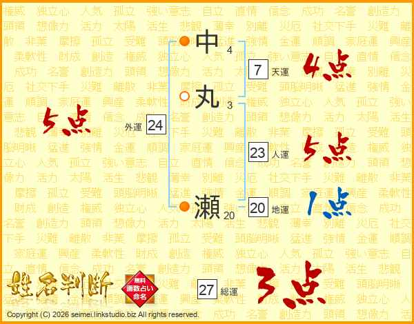中丸瀬さんの総運は27画の3点!