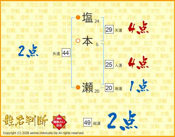 塩本瀬さんの天運は29画の4点!