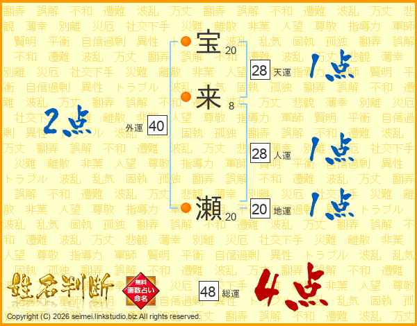 宝来瀬さんの総運は48画の4点!