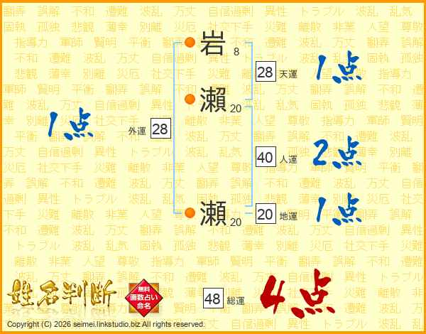 岩瀨瀬さんの総運は48画の4点!