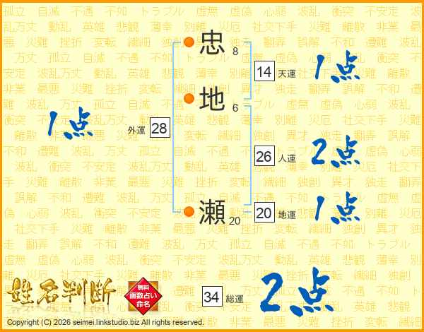 忠地瀬さんの人運は26画の2点!