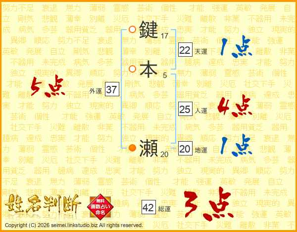 鍵本瀬さんの人運は25画の4点!