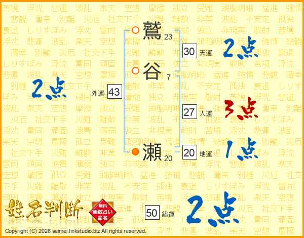 鷲谷瀬さんの天運は30画の2点!
