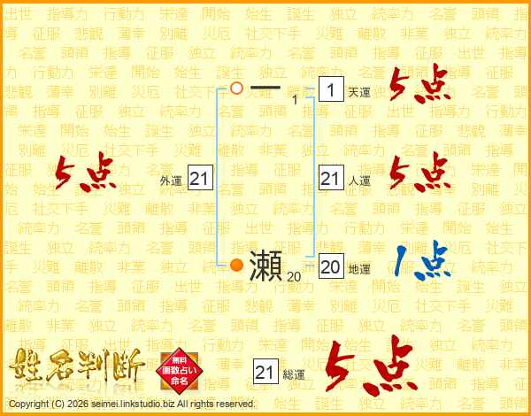 一瀬さんの総運は21画の5点!