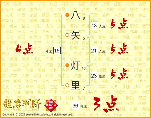 八(8画)矢(5画) 灯(16画)里(7画)