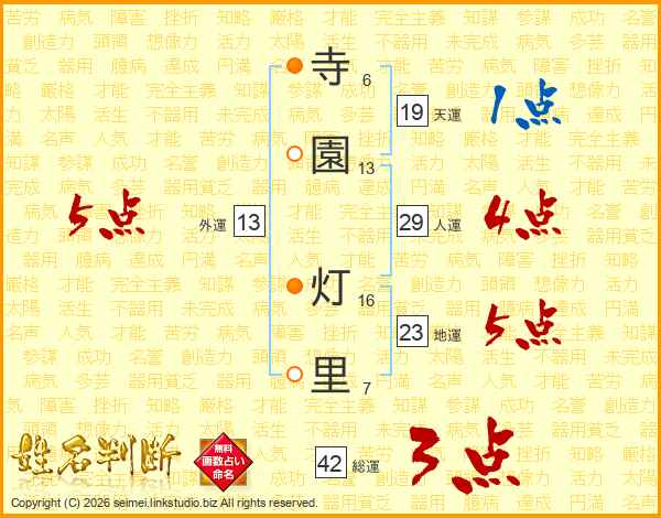 寺(6画)園(13画) 灯(16画)里(7画)