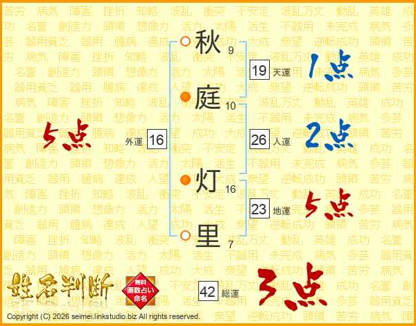 秋庭灯里さんの総運は42画の3点!