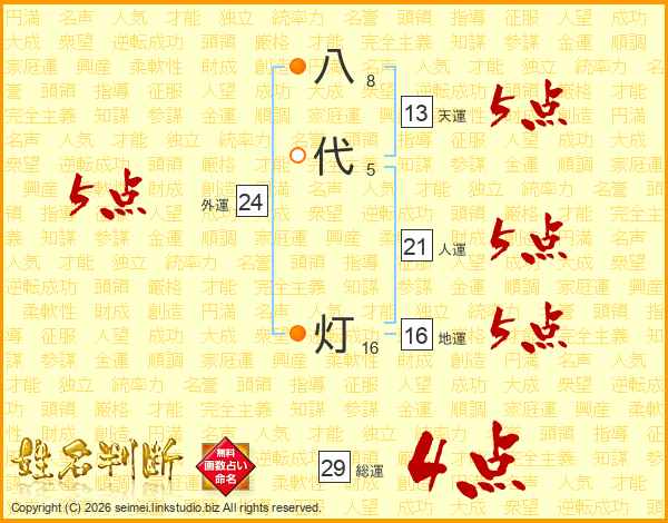 八代灯さんの総運は29画の4点!