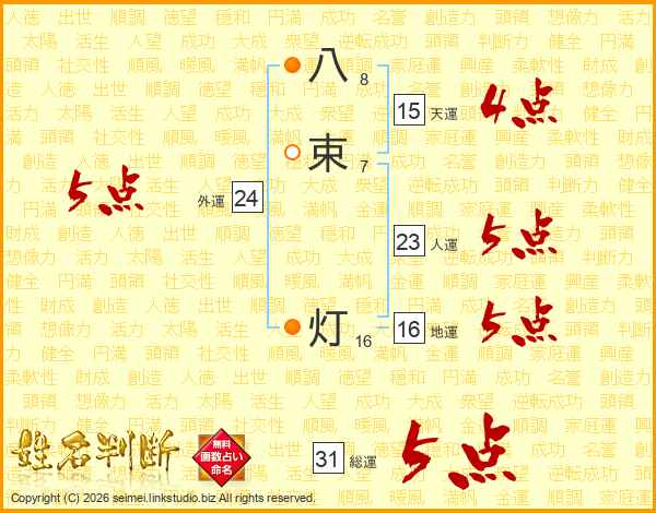 八束灯さんの総運は31画の5点!