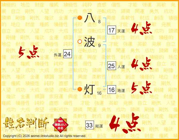 八波灯さんの総運は33画の4点!