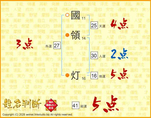 國領灯さんの天運は25画の4点!