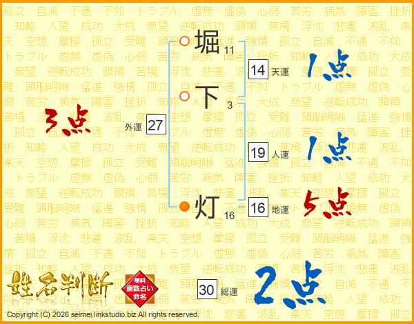 堀下灯さんの総運は30画の2点!