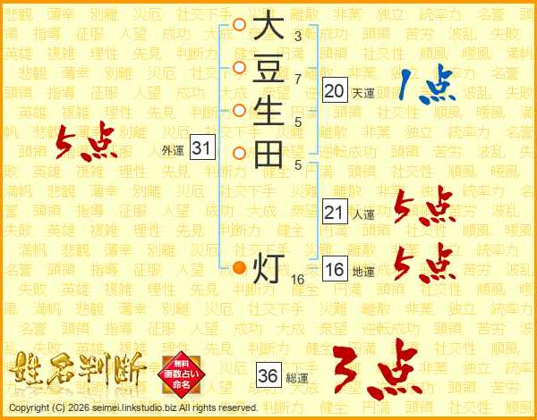 大(3画)豆(7画)生(5画)田(5画) 灯(16画)