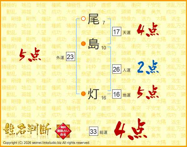 尾島灯さんの総運は33画の4点!