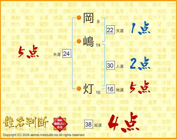 岡嶋灯さんの総運は38画の4点!