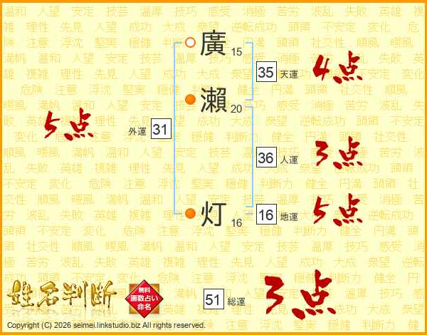 廣瀨灯さんの外運は31画の5点!