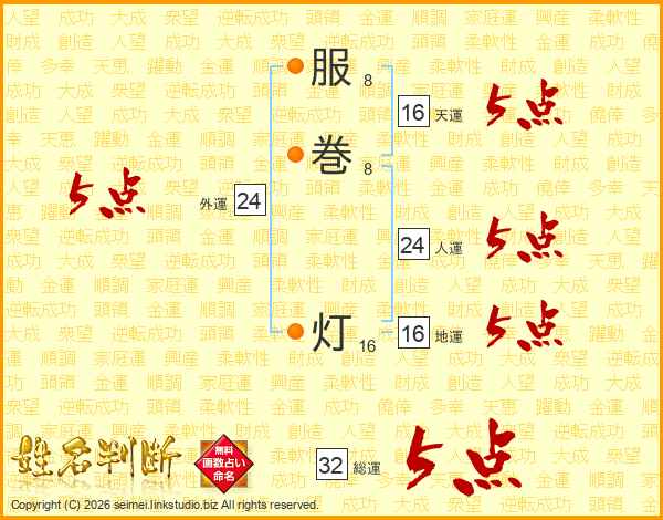 服(8画)巻(8画) 灯(16画)