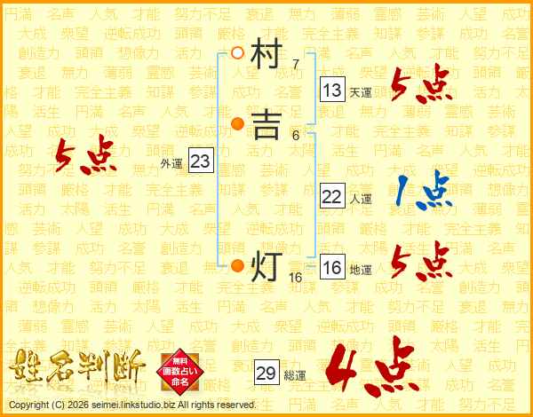 村吉灯さんの総運は29画の4点!