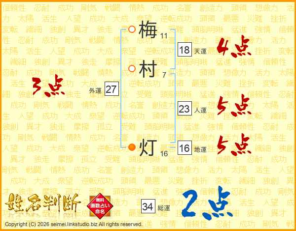 梅(11画)村(7画) 灯(16画)