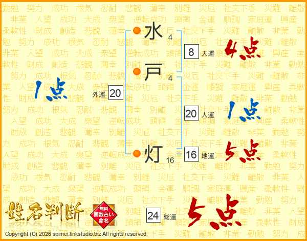 水戸灯さんの総運は24画の5点!