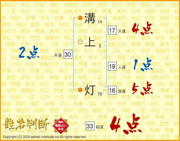 溝上灯さんの総運は33画の4点!