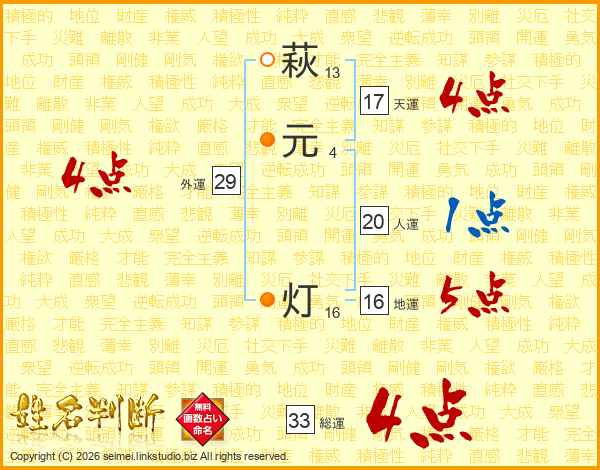 萩元灯さんの総運は33画の4点!