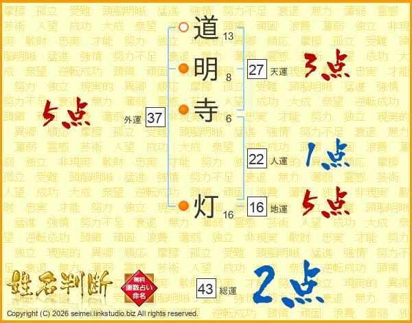 道明寺灯さんの外運は37画の5点!