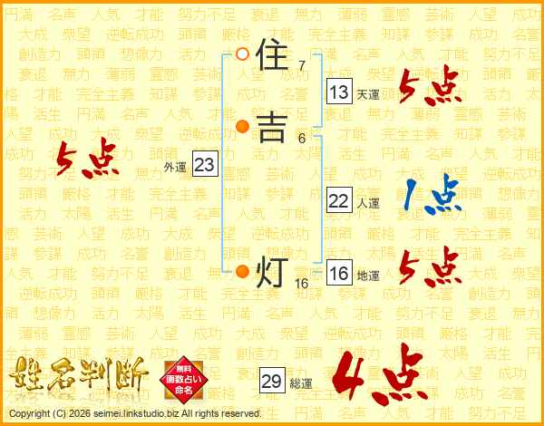 住吉灯さんの総運は29画の4点!