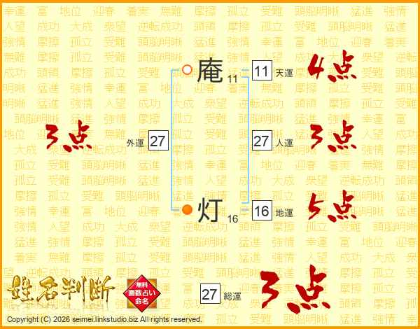 庵灯さんの総運は27画の3点!