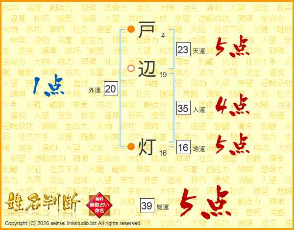 戸辺灯さんの総運は39画の5点!