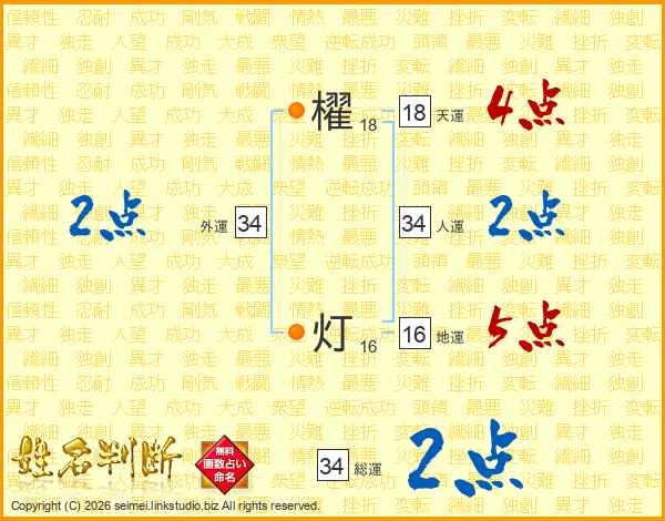 櫂灯さんの人運は34画の2点!