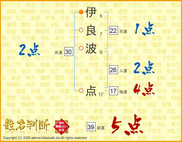 伊良波点さんの総運は39画の5点!