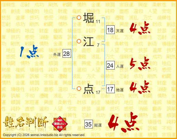 堀江点さんの総運は35画の4点!