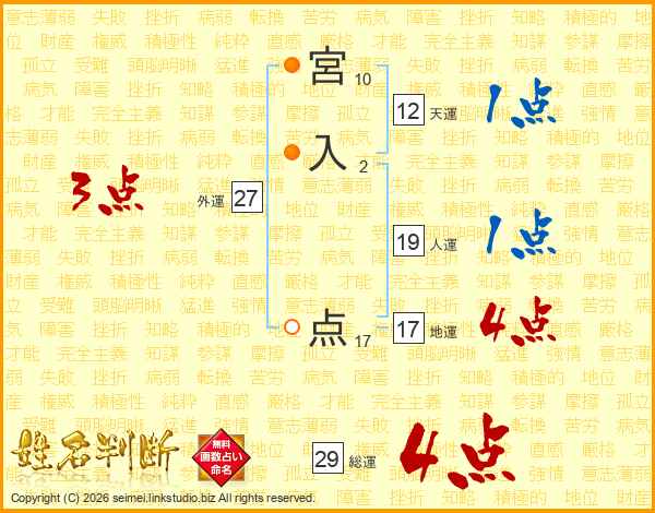 宮入点さんの地運は17画の4点!