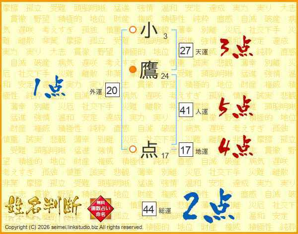 小鷹点さんの総運は44画の2点!