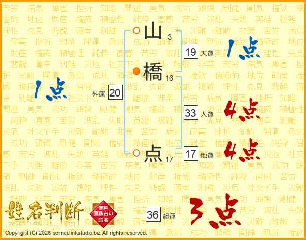 山橋点さんの人運は33画の4点!