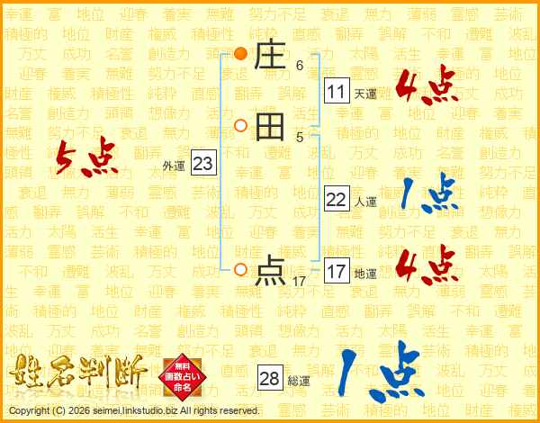庄田点さんの総運は28画の1点!