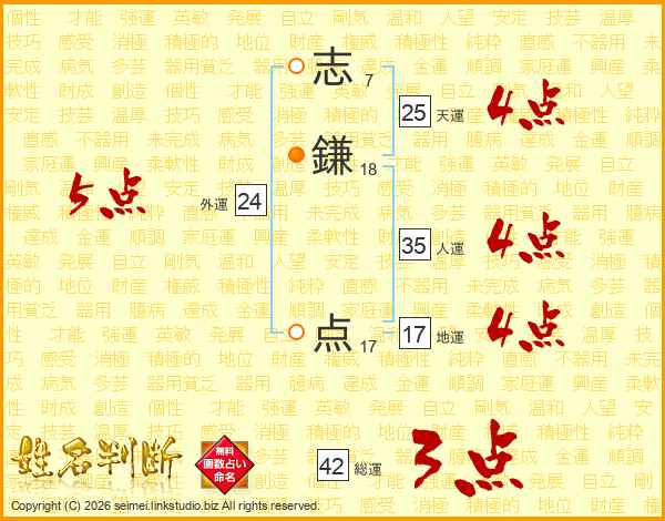 志鎌点さんの天運は25画の4点!