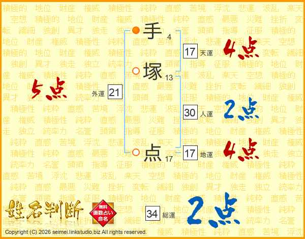 手(4画)塚(13画) 点(17画)