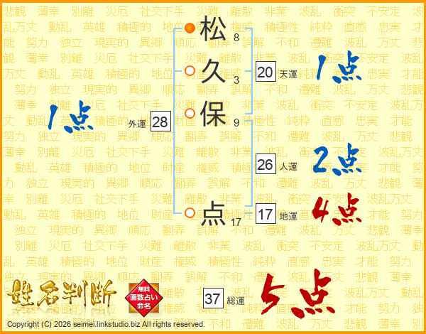 松(8画)久(3画)保(9画) 点(17画)