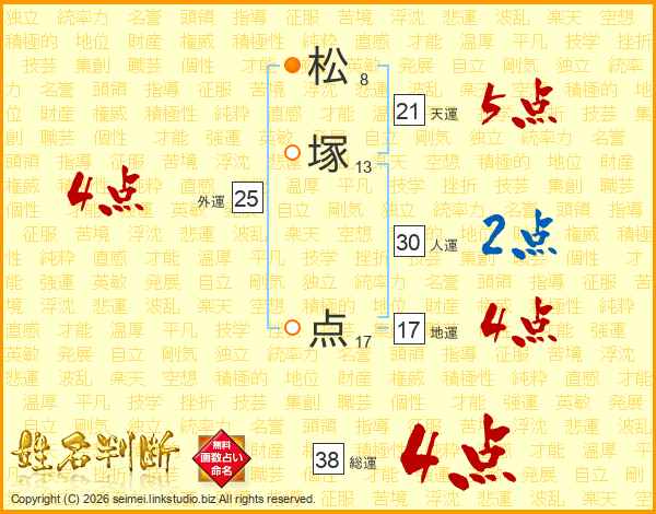 松塚点さんの総運は38画の4点!