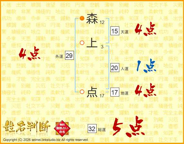 森上点さんの総運は32画の5点!