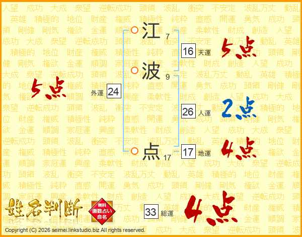 江波点さんの総運は33画の4点!