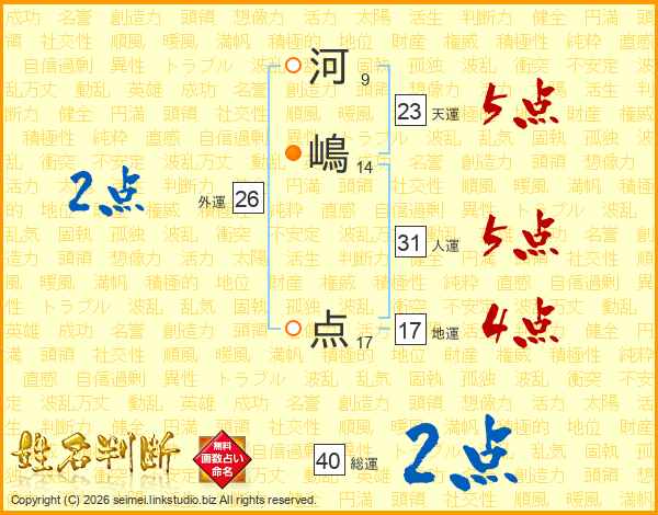 河嶋点さんの総運は40画の2点!