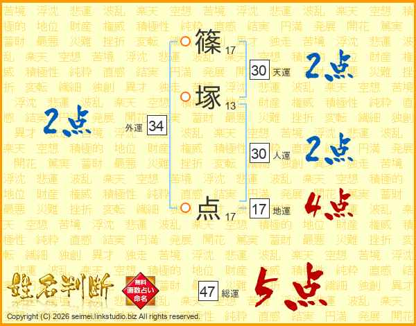 篠塚点さんの総運は47画の5点!