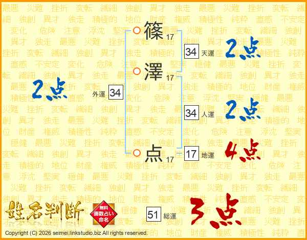 篠澤点さんの総運は51画の3点!