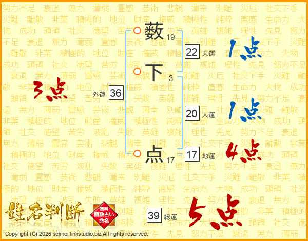 薮下点さんの総運は39画の5点!