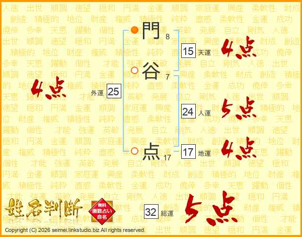 門谷点さんの総運は32画の5点!