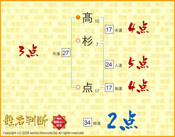 髙(10画)杉(7画) 点(17画)