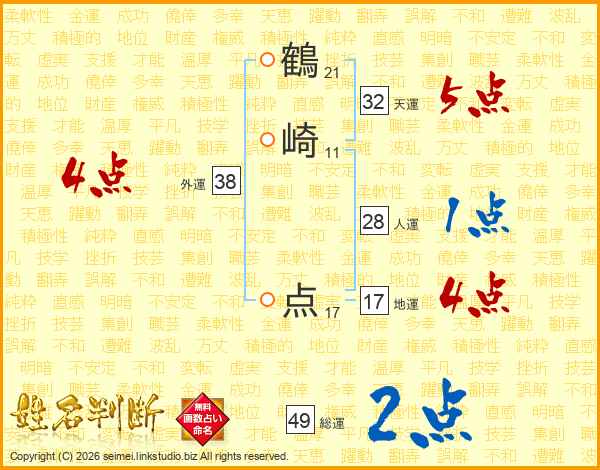鶴崎点さんの総運は49画の2点!